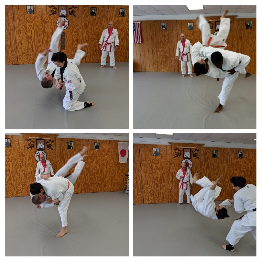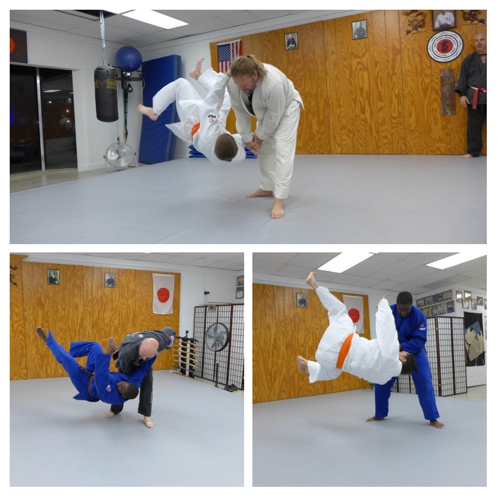 Classes begin with physical training. Core exercises, calisthenics, and breathing techniques to improve stamina, and focus one’s energy (Ki, or Chi). Forceful breathing techniques (Kiah) are taught when striking (Atemi), kicking (Geri Waza), and throwing (Nage Waza). Break falls (Ukemi Waza), and rolling techniques (Kaiten Waza) promote self preservation. Body movement (Tai Sabaki, Kata) teach students to avoid or minimize getting hit, kicked, or thrown, as well as entry to various techniques. Blocking and avoidance of punches and kicks ie. “checking” and or “trapping” is of paramount importance in the Sparring, and Kumite phases of training.